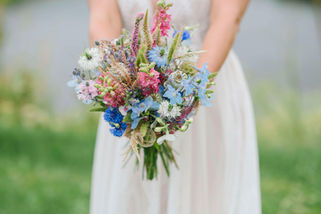 Inspired by the mountains and meadows of Ashton, ID, this wildflower look was created using grasses, Scabiosa seed pods, Poppy seed heads, Nigella, Larkspur, Delphinium, and many other flowers with fascinating textures and colors. Everything combined beautifully to give a freshly-gathered feel to these wedding florals.