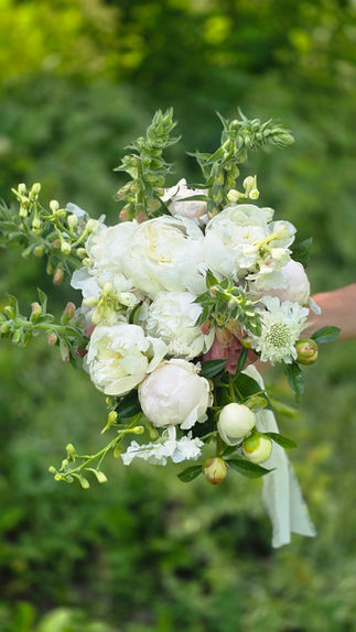 Lush Peonies, Apricot Foxglove and Scabiosa make up this beautiful, classic bouquet.
